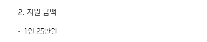 신청 대상은 법정 생년월일 2002년 12월 31일 이전 출생의 성인으로 개인별로 본인이 신청 가능하다고 합니다. 미성년 자녀는 동일주소지 세대주가 신청 가능하며, 세대주인 미성년자는 직접 신청이 가능이라고 적혀있는 걸 볼 수 있습니다. 국민지원금 지원 금액은 1인당 25만 원인데요. 2인 가구는 50만 원, 3인 가구는 75만 원, 4인 가구는 100만 원을 받아 볼 수 있습니다.